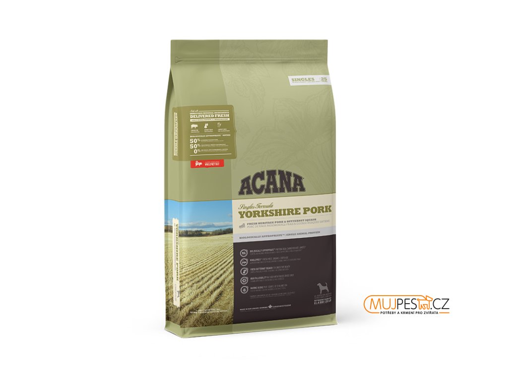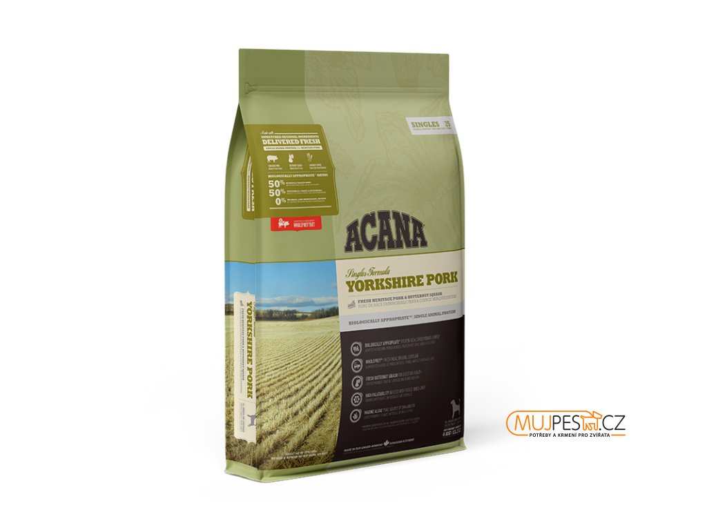 Suroviny: syrové vepřové (18 %), celé dehydrované vepřové (18 %), celý zelený hrách, celá červená čočka, syrová vepřová játra (8%), vepřový tuk (6%), čerstvá celá máslová dýně (4%), celá cizrna, celá zelená čočka, celý žlutý hrách, vláknina z čočky, hrachový škrob, řasa (zdroj DHA a EPA), čerstvá celá dýně, sušená řasa, sůl, čerstvé celé brusinky, čerstvé celé borůvky, sušený kořen čekanky, kurkuma, ostropestřec, kořen lopuchu, levandule, kořen proskurníku, šípky