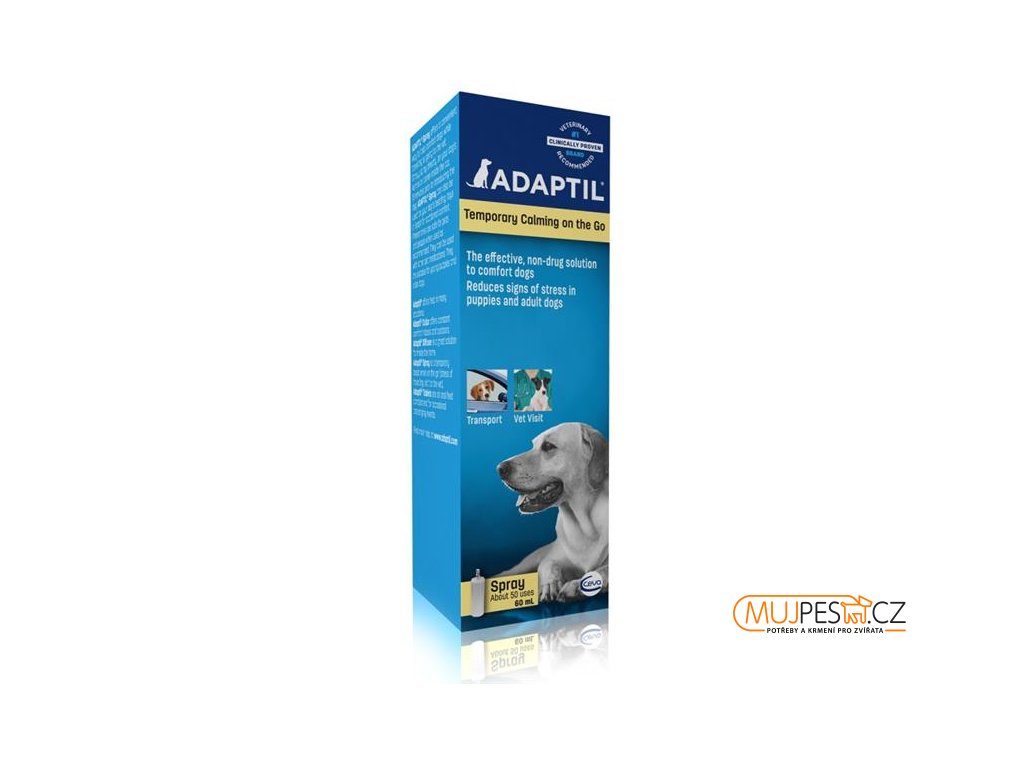 Sprej ADAPTIL® pomáhá odstranit nebo zmírnit strach u štěňat i dospělých psů v situacích, které v nich vyvolávají úzkost. Sprej lze použít v interiéru i mimo dům, např. při cestování, pro adaptaci v novém prostředí, před návštěvou veterináře nebo při nepředvídané události. Sprej také pomáhá odstranit nebo zmírnit reakce, jako jsou ničení věcí, znečisťování domácnosti, hlasové projevy (štěkání, vytí), slinění, zvracení nebo zrychlený dech.