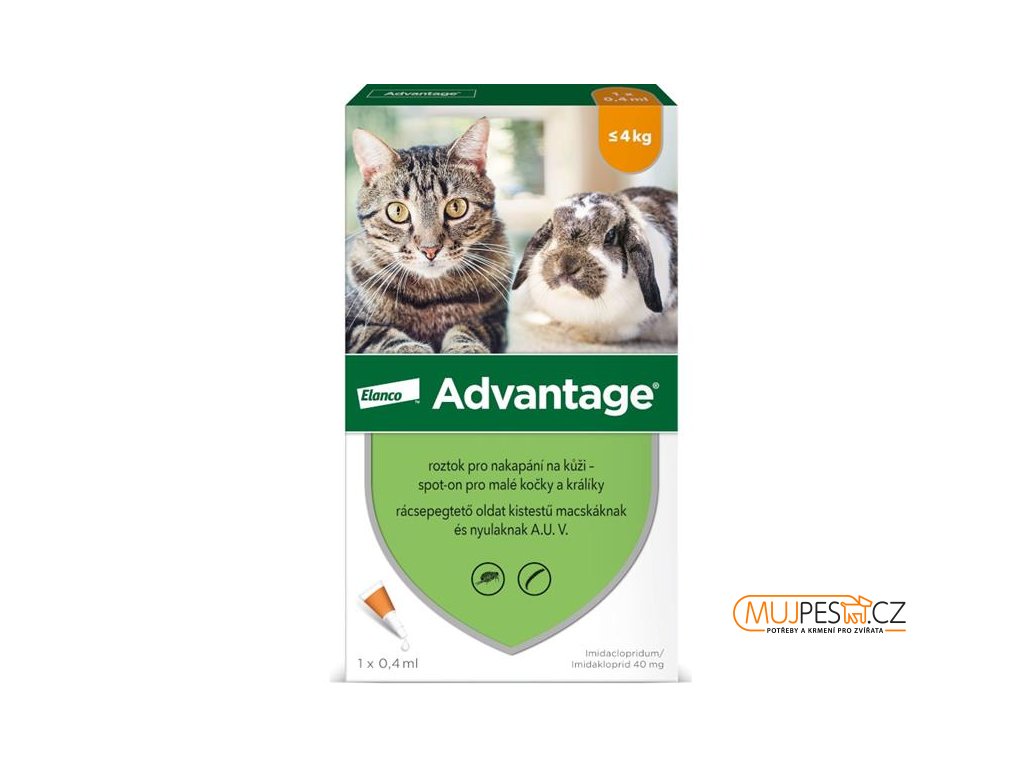 - Advantage spot-on je vhodný k léčbě a prevenci napadení blechami pro kočky a králíky do 4 kg.