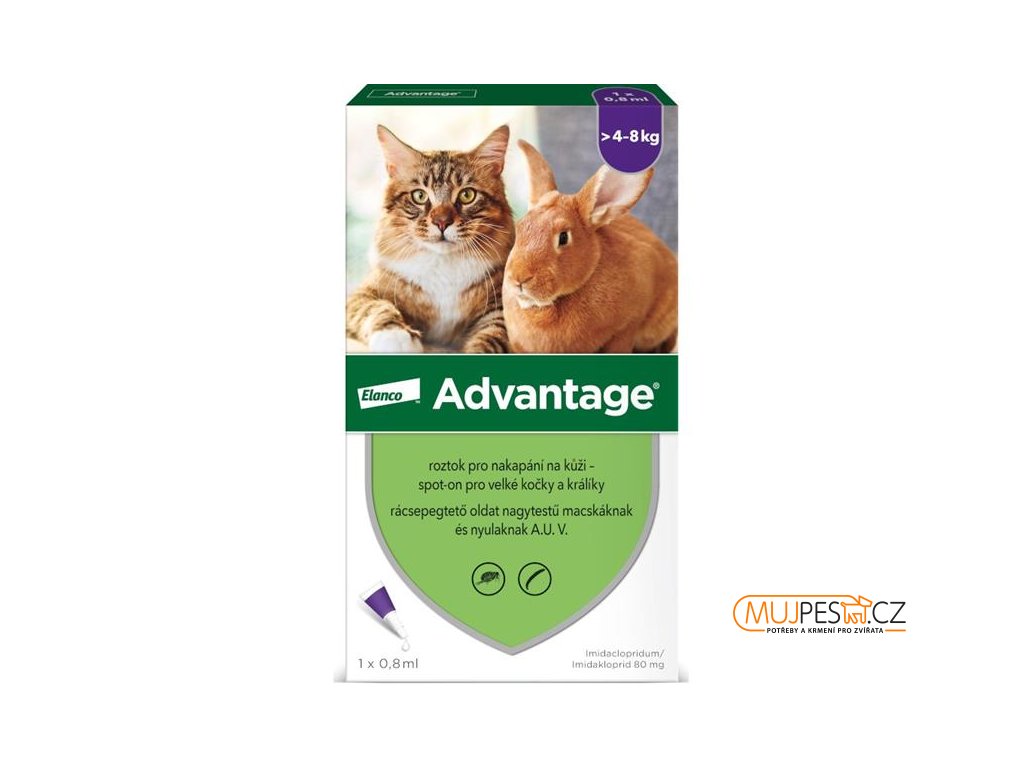- Advantage spot-on je vhodný k léčbě a prevenci napadení blechami pro kočky a králíky nad 4 kg.