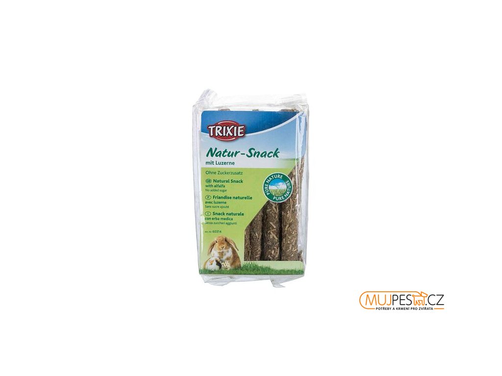 Natur Snack - Alfalfa Sticks jsou přírodní tyčinky s vojtěškou, které jsou ideálním pamlskem pro malá zvířata. Neobsahují přidaný cukr a jsou vyrobeny z kvalitních přírodních surovin.