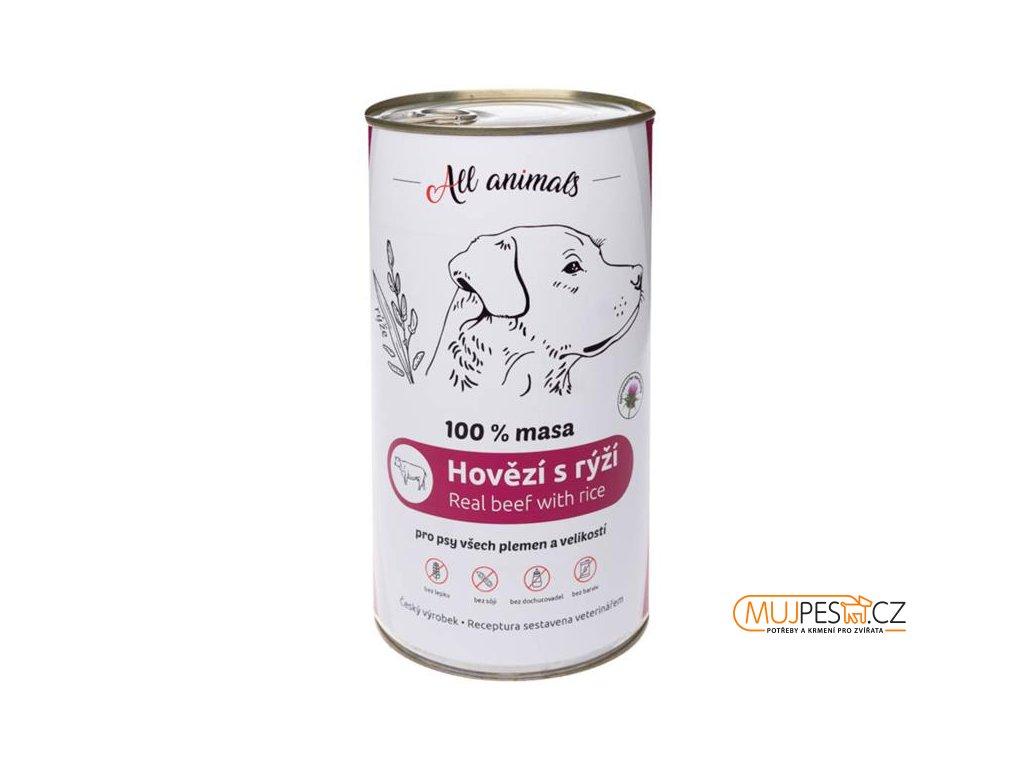 ALL ANIMALS konz. pro psy hov.mleté s rýží 1200g