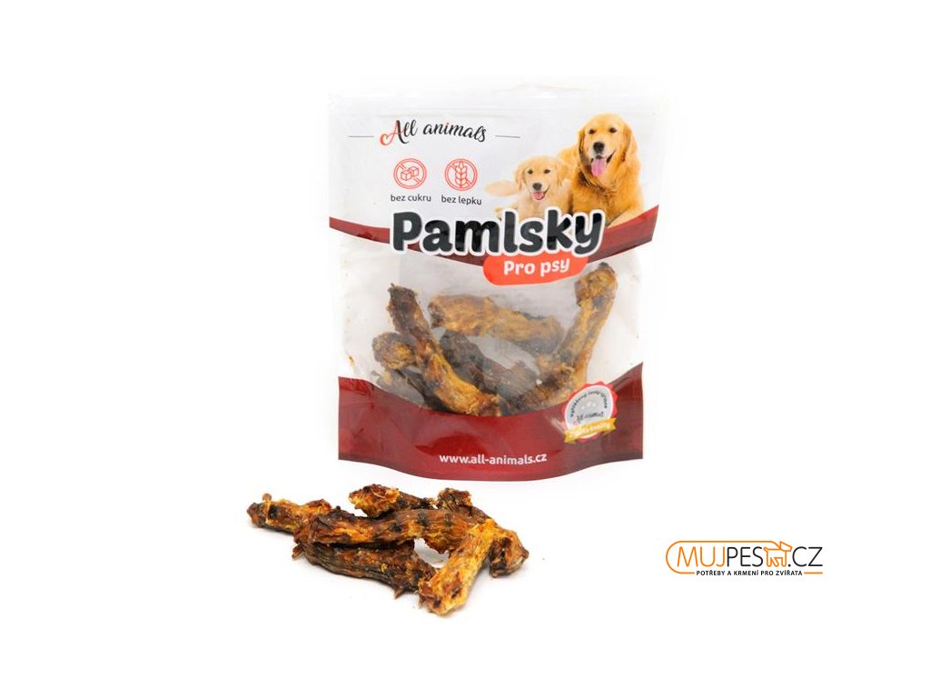 Chutná odměna při výcviku, ale i plnohodnotná krmná dávka. Vynikající masová pochoutka, kterou můžete vzít na cesty jako plnohodnotnou náhradu za čerstvé maso (kosti). Krky jsou zbaveny kůže, aby se snížil obsah tuku. Čistí zuby od zubního plaku a kamene a posiluje žvýkací svaly. Vhodné pro malá, střední a velká plemena, štěňata větších plemen. Nevhodné pro jedince se zažívacími potížemi. Vyrobeno sušením, bez konzervačních látek.