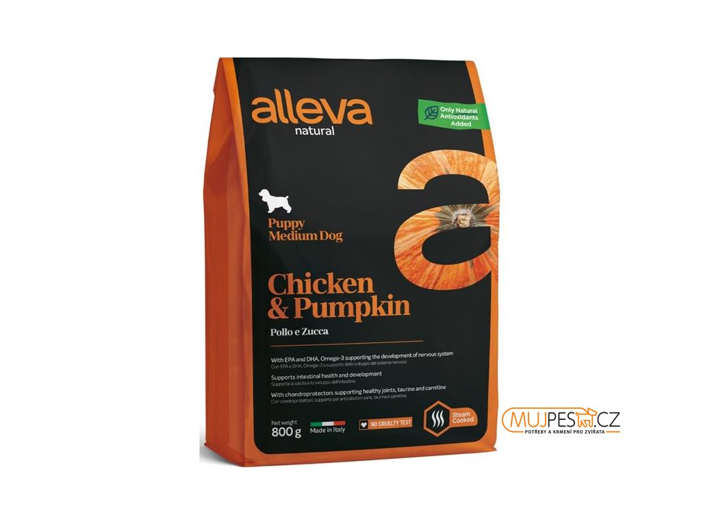ALLEVA NATURAL Dog Dry Puppy Chicken&Pumpkin Medium 800g