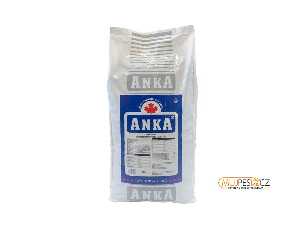 Kompletní krmivo pro psy staršího věku. Tato speciální výživa dodává redukovaný protein pro zajištění správné funkce ledvin a má sníženou kalorickou hodnotu potřebnou k prevenci obezity. Nižší obsah minerálů v ANKA SENIOR znamená menší zátěž pro organismus. Na druhé straně zvýšený obsah vitaminů a vynikající stravitelnost zajišťují lepší zdravotní stav a tím i prodloužení života Vašeho věrného přítele.