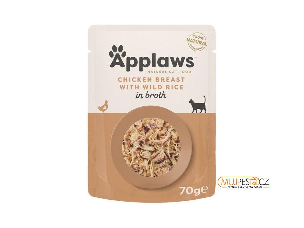 Kapsička Applaws vyniká svou kvalitou a složením. Dopřejte své kočce 100% přírodní,lehce stravitelné, nutričně vysoce hodnotné, přirozeně bezlepkové, hypoalergenní a hlavně velmi chutné doplňkové krmivobez dochucovadel, konzervačních látek, barviv a uměle přidaných vitamínů. Vlhké krmivo obsahuje 75 % kuřecích prsou a chutný vývar, proto jde o skvělou volbu pro kočky, které málo pijí nebo potřebují vyšší přísun tekutin. Maso pochází z kuřat, která jsou chována ve volných výbězích, krmena přirozeně bez použití hormonů a antibiotik, jsou zdravá a v potravinářské kvalitě.