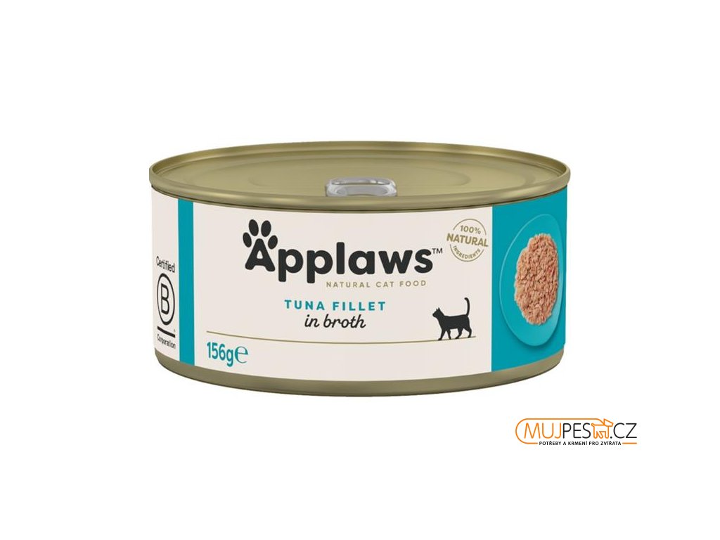 Konzerva Applaws je lehce stravitelné, nutričně vysoce hodnotné, přirozeně bezlepkové, hypoalergenní a hlavně velmi chutné krmení! 100% přírodní doplňkové krmivo bez umělých konzervačních látek, barviv nebo dochucovadel. Kvalitu poznáte na první pohled po otevření konzervy –přirozená konzistence natrhaných kousků masa z tuňáka v lahodném rybím vývaru vás přesvědčí a vaši kočku nadchne. Maso z tuňáka je bohaté na omega-3 a omega-6 nenasycené mastné kyseliny, které významně zlepšují kvalitu srsti a kůže. Ryby pocházejí z oceánů a jsou loveny způsobem, který neohrožuje delfíny (Dolphin Friendly Product).