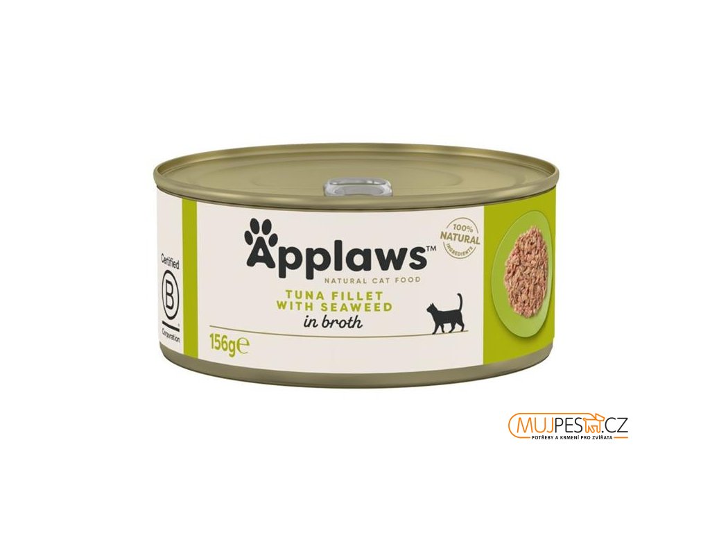 Konzerva Applaws je lehce stravitelné, nutričně vysoce hodnotné, přirozeně bezlepkové, hypoalergenní a hlavně velmi chutné krmení! 100% přírodní krmivo bez umělých konzervačních látek, barviv nebo dochucovadel. Kvalitu poznáte na první pohled po otevření konzervy –přirozená konzistence natrhaných kousků masa z tuňáka v lahodném rybím vývaru vás přesvědčí a vaši kočku nadchne. Maso z tuňáka je bohaté na omega-3 a omega-6 nenasycené mastné kyseliny, které významně zlepšují kvalitu srsti a kůže. Mořské řasy obsahují vysoké množství vitamínů a minerálních látek. Ryby pocházejí z oceánů a jsou loveny způsobem, který neohrožuje delfíny (Dolphin Friendly Product).