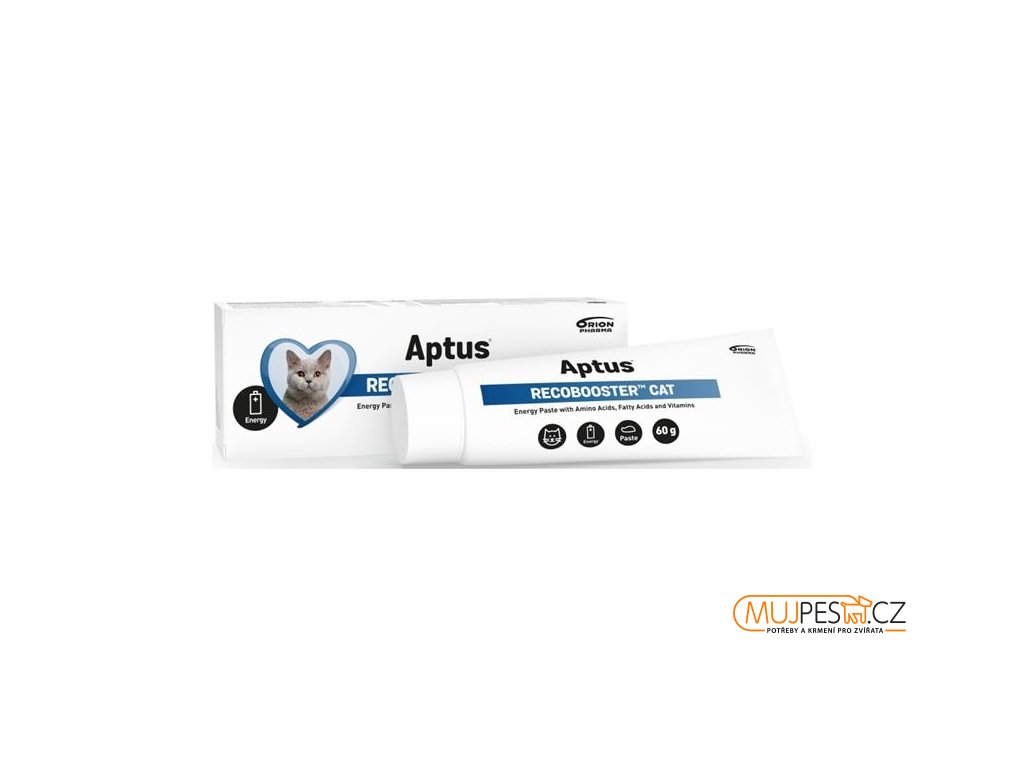 Aptus Recobooster Cat energetická pasta 100 g poskytuje nepostradatelné aminokyseliny, mastné kyseliny a vitaminy. Podává se kočkám zotavujícím se po nemoci, úrazu nebo chirurgickém zákroku. Je vhodná pro stavy, které provází dočasné nechutenství. Složení tohoto nutričního doplňku chrání organismus před vyčerpáním a zabraňuje rapidnímu poklesu tělesné hmotnosti.