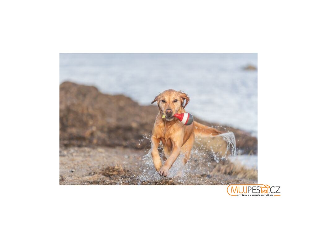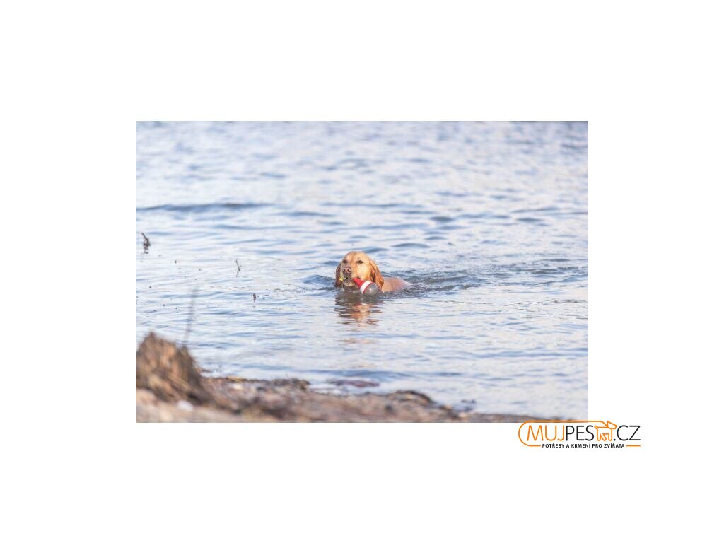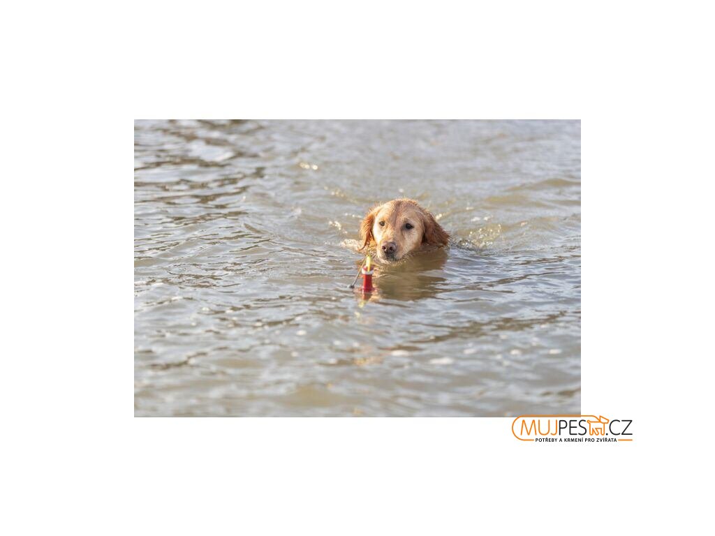 TIP: pro vzdálenější odhození je možné uchopit bójku za šňůrku, roztočit a díky tomu odhodit dále - stojí na vodní hladině a je proto dobře viditelný a pro psa uchopitelná