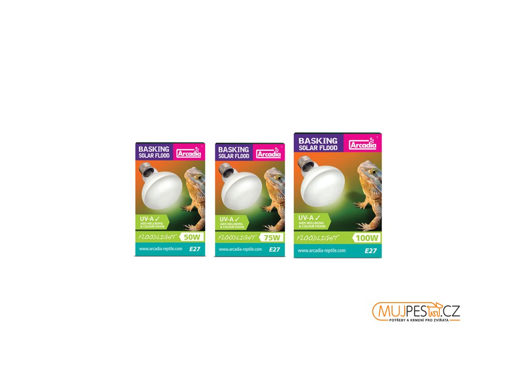 Basking Solar Flood nevyzařují UVB, jsou určeny pro osvětlení terárií a jako tepelný zdroj. Vhodné pro kombinaci s kompaktními UVB žárovkami nebo zářivkami.