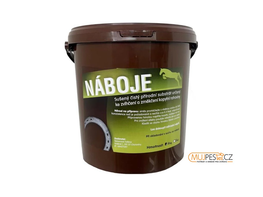 Čistý sušený přírodní substrát s vysokou sorpční schopností je určený ke zvlhčení a změkčení kopytní rohoviny. Jílové minerály se vyznačují vysokou bobtnavostí a plastičností. Náboje se používají na změkčení rohoviny před okováním či jakoukoli jinou úpravou kopyt. V období sucha lze směs používat pro prevenci praskání vysušené rohoviny.