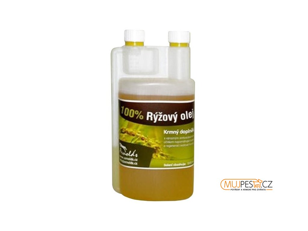 Rýžový olej pro koně. Krmný doplněk s výrazným antioxidačním účinkem napomáhající růstu a regeneraci svalové hmoty.