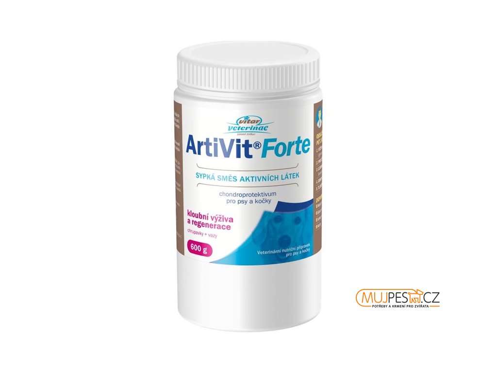 Špičková česká kloubní výživa. Maximálně koncentrovaný přípravek ve formě prášku, který zvířata velmi dobře snáší. Osminásobně vyšší dávka aktivních látek než je v Artivit sirupu.