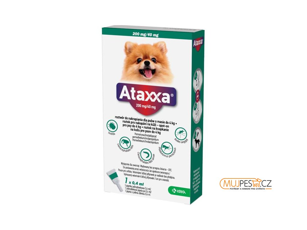 Ataxxa pro psy S 1x200mg/40mg tmavě zelená sol 1 x 0.4 ml(do 4kg)