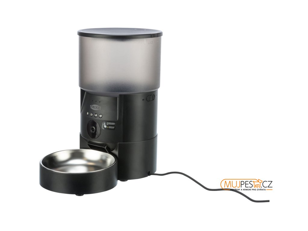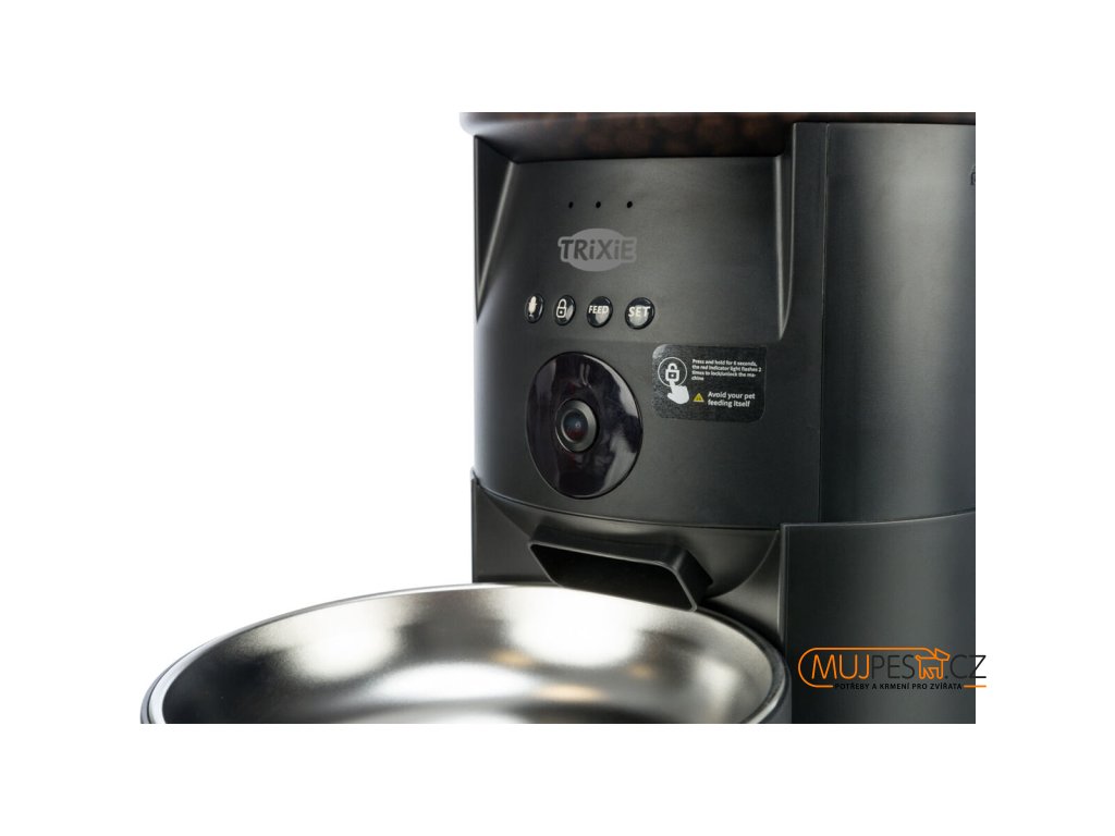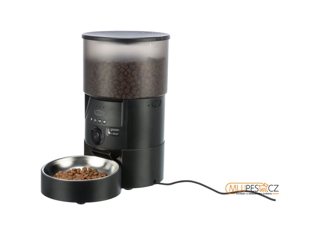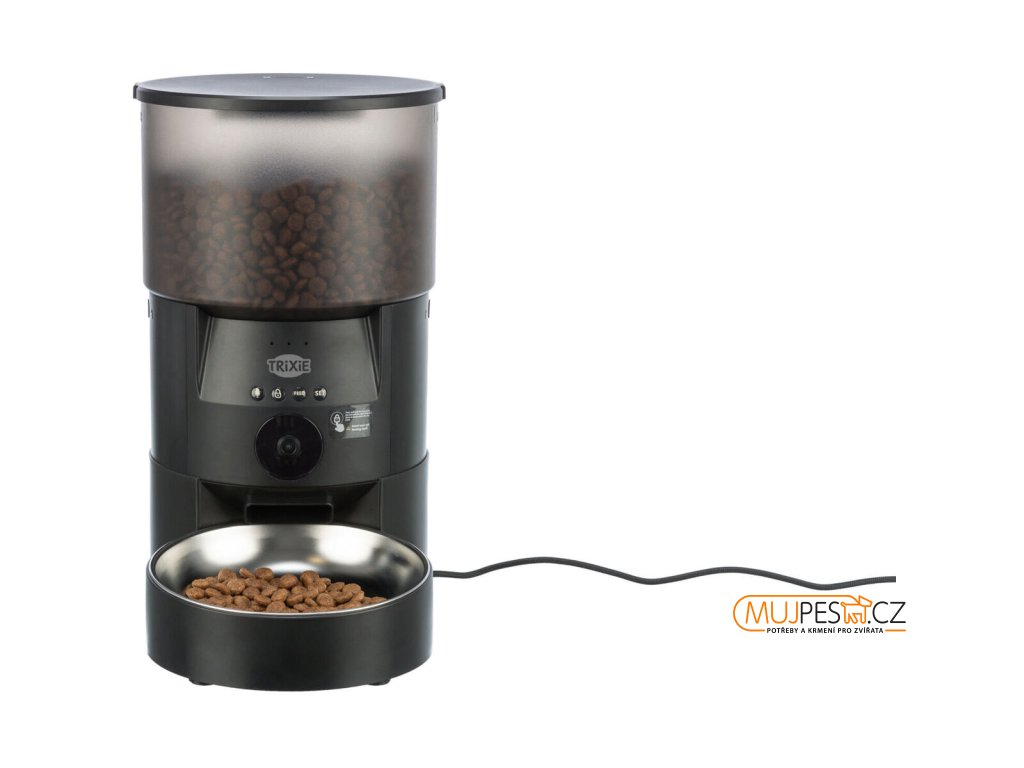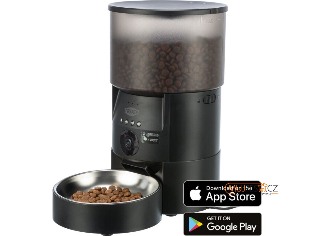 Chytrá domácí krmná stanice s ovládáním pomocí aplikace a s integrovanou kamerou.