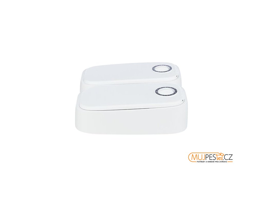 Krmítko Je vhodné pro vlhké i suché krmivo. Obsahuje dva chladicí polštářky, které po nachlazení v mrazničce pomáhají udržet krmivo čerstvé. Krmící misky jsou vhodné do myčky.