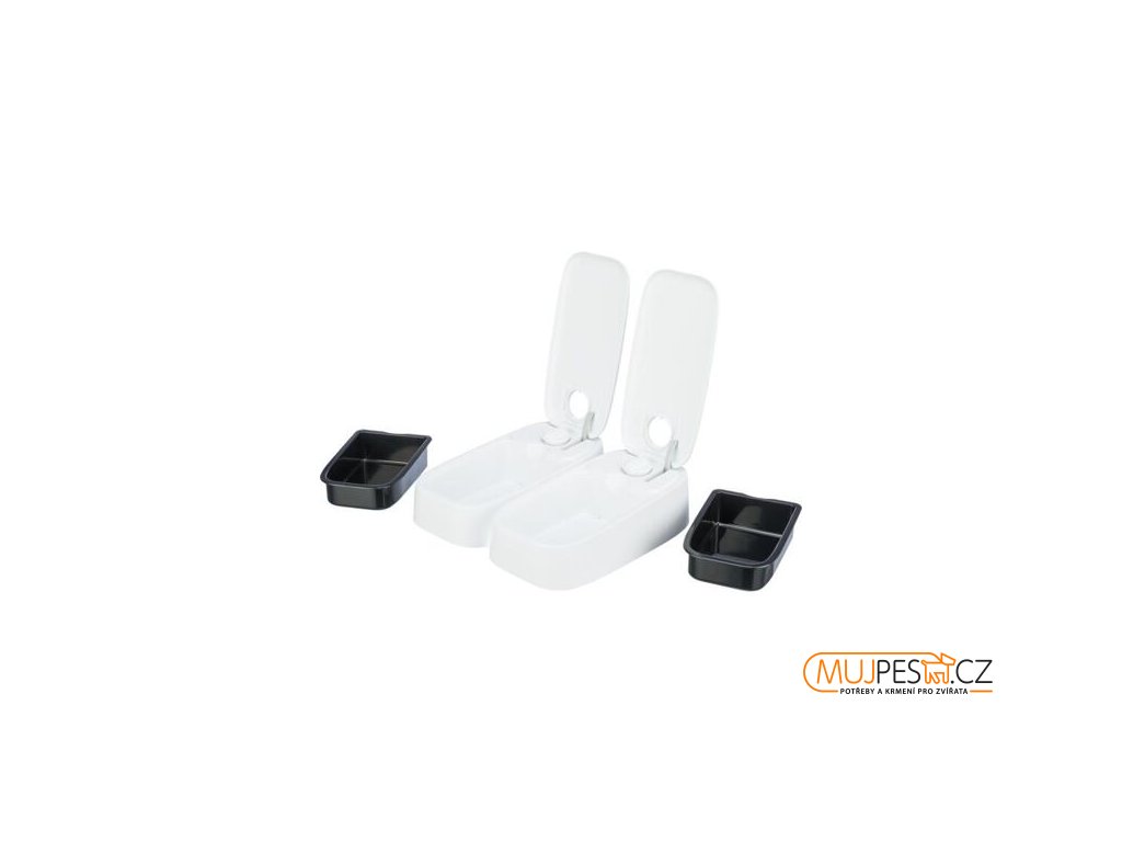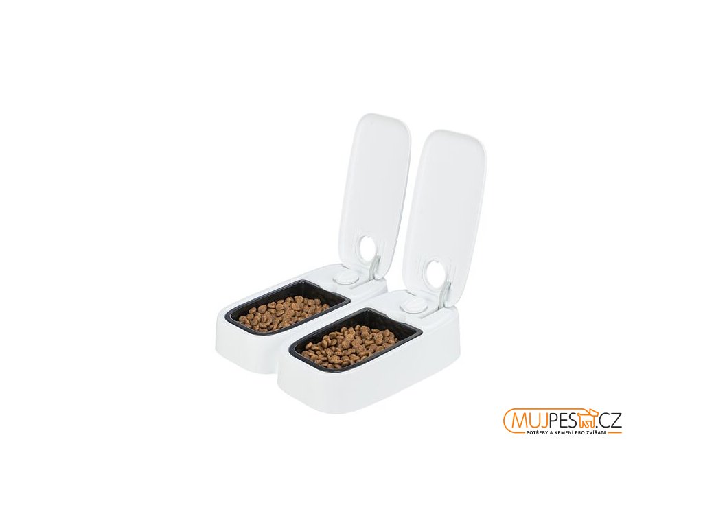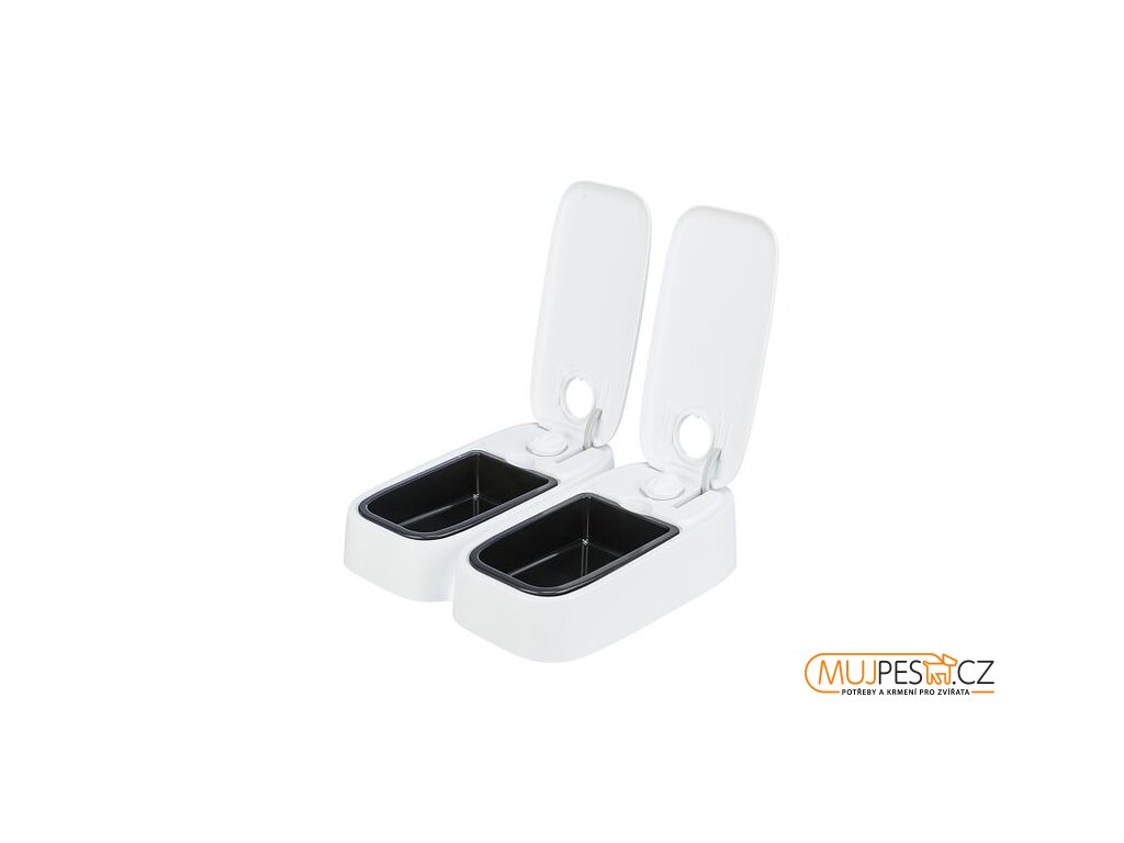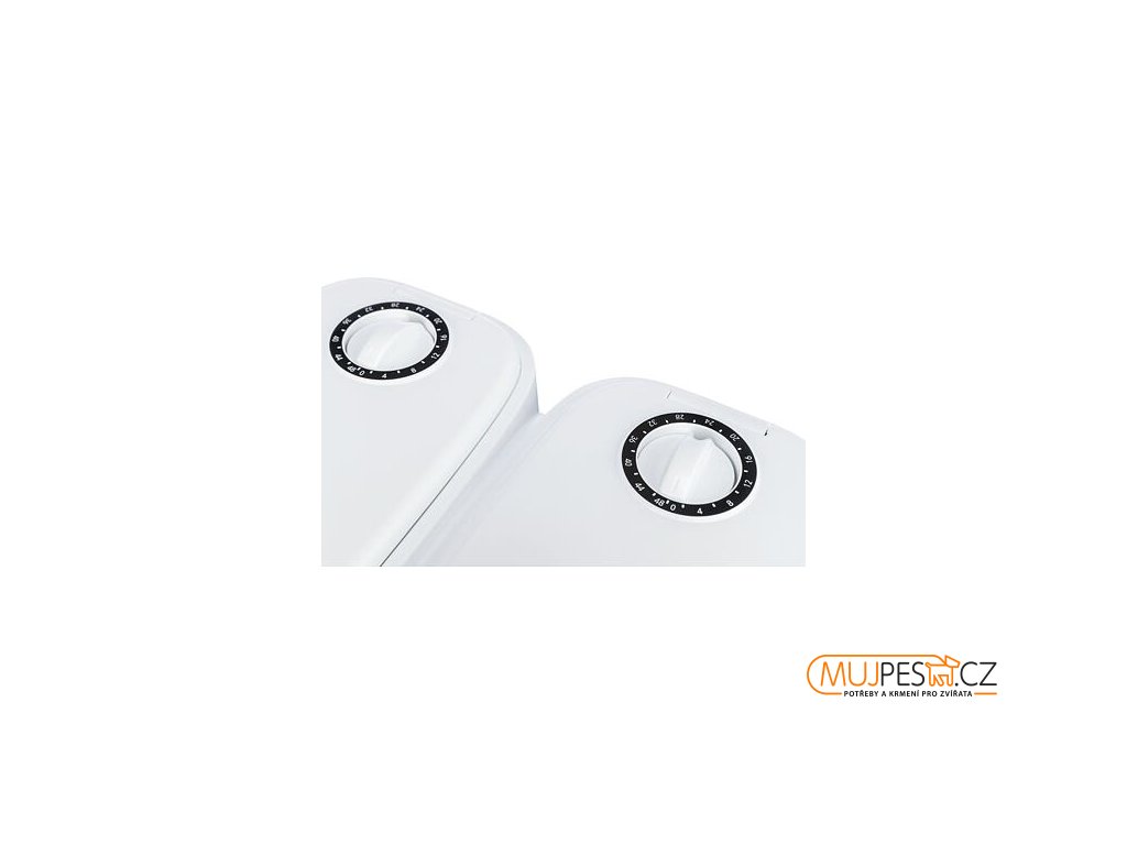 Dva 48hodinové časovače umožňují naprogramovat obě misky současně nebo samostatně. S protiskluzovou úpravou.