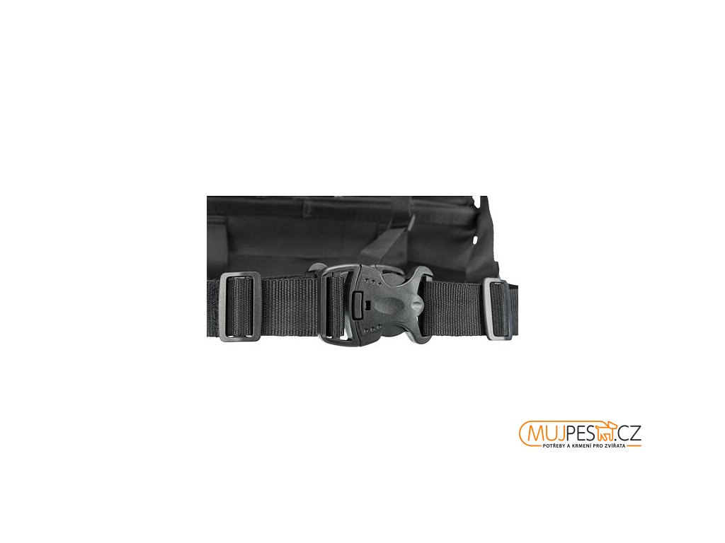 - otvory na pásy umožňují připoutání psa