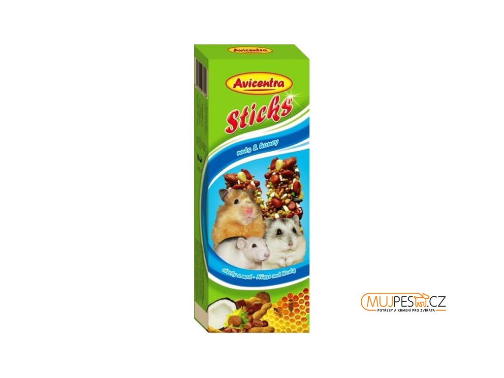 Popis: Doplňkové krmivo pro křečky, myši, potkany a další malé hlodavce. Tyčinky s ořechy a medem jsou výbornou pochoutkou, ale také krmivem, které Vašemu mazlíčkovi dodává důležité vitamíny a minerály pro zdravý a vitální život.