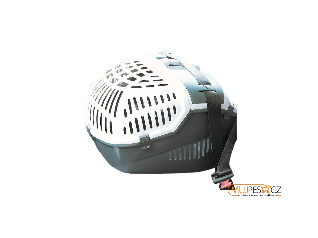 Zlatým hřebem tohoto moderního přepravního boxu je, že je možno ho kompletně otevřít z horní strany, vzadu i vpředu. Dva uzavíratelné, velké vstupní otvory zajišťují bezproblémové vyndavání a zandavání do přepravky bez stresu. Praktické upevňovací zařízení pro standardní tříbodové bezpečnostní pásy zajišťuje optimální bezpečnostní pás a zabezpečuje tak přepravu malých zvířat na sedadle spolujezdce nebo na zadním sedadle motorových vozidel.