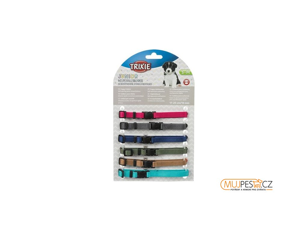 Balení nylon.rozeznávacích obojků pro štěňata S-M 17-25cm/10mm,malin,šedá,mod,khaki,růž,tyrkys