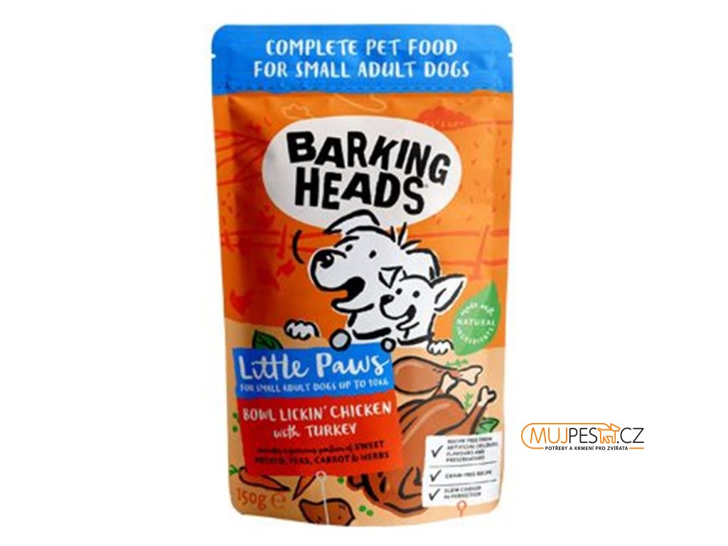 BARKING HEADS Litt.Paws Lickin' Chick+Tur kapsička150g