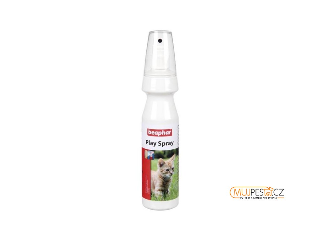 Tréninkový přípravek pro kočky a koťata. Místo postříkané přípravkem Play Spray se stává pro kočku atraktivním. Např.: pomáhá učit kočku chodit škrábat na škrabadlo.