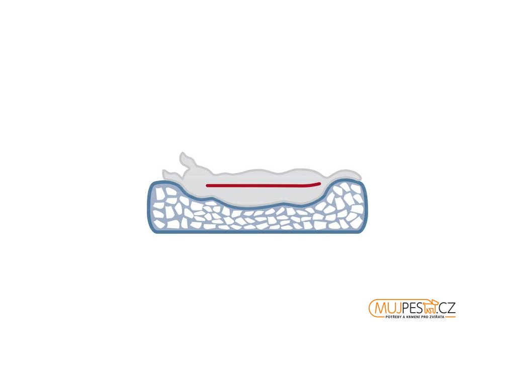 Ležící plocha je vyrobena z vysokoelastické vločkové pěny s paměťovým efektem – tloušťka 13 a 14 cm zaručuje ideální podporu pro páteř a klouby. Okraje polštáře jsou plněné stejným materiálem, takže pes může pohodlně spočinout i hlavou, bez nepříjemných otlaků.