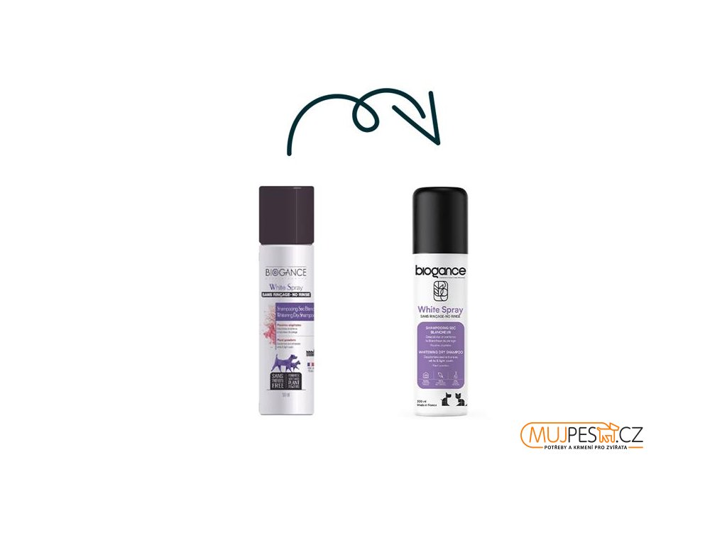 Biogance White Spray je speciální suchý šampon ve spreji pro psy i kočky se světlou a bílou srstí.