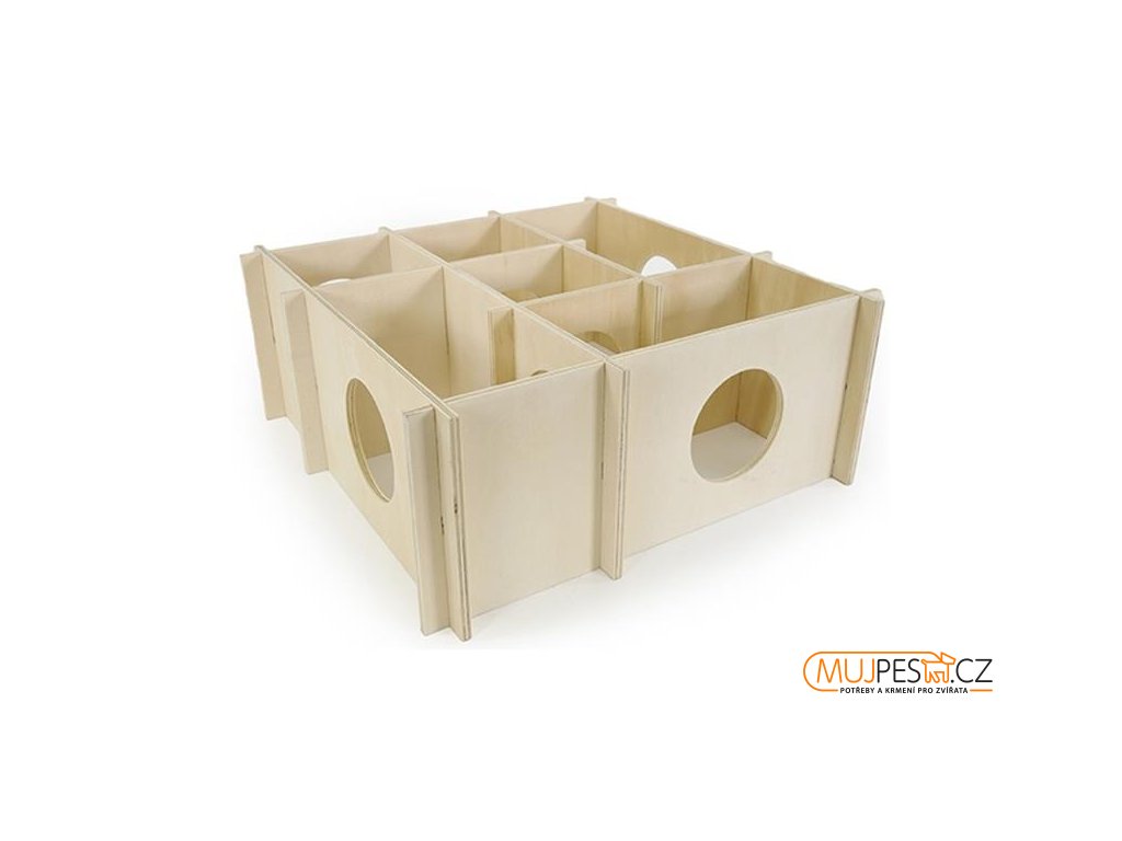 Zábavné bludiště pro všechny křečky, myši a pískomily se skládá ze 7 panelů a lze jej rozložit pro snadnější skladování. Překližka je neošetřená a bezpečná v případě ohlodání. Pro ještě větší zábavu můžete spoji dvě nebo více bludišť dohromady. Tato hračka je skvělá na zahnání nudy v klecích a výbězích.