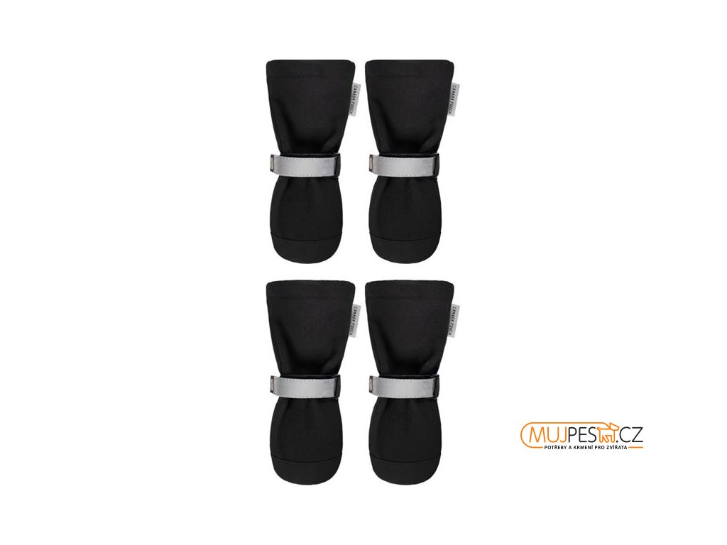 Canada Pooch Soft Shield Boots jsou pohodlné nesmekavé softshellové boty pro psy s výraznými reflexními prvky. Jsou šité z pevného, voděodolného, a přitom prodyšného materiálu, který udržuje tlapky v suchu a teple. Díky dostatečně širokému otvoru opatřenému stahovací šňůrkou s brzdičkou se boty snadno nasazují i zouvají a při chůzí dobře drží na předloktí. Kolem nártu a nadprstí se upevňují pomocí pásku se suchým zipem. Pásek je z reflexního materiálu, který zajišťuje dobrou viditelnost ze všech úhlů. Boty chrání tlapky před prochladnutím, poraněním a znečištěním při vycházkách nejen v zimě, ale kdykoli v chladném, deštivém či blátivém počasí nebo v náročném terénu. Podrážky ze speciální protiskluzové gumy minimalizují riziko uklouznutí. Boty jsou k dostání v různých velikostech.