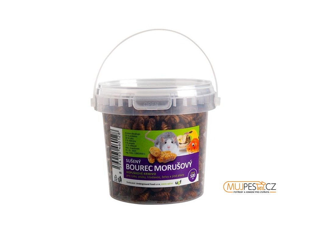 Larvy bource morušového jsou vhodným doplňkem stravy zejména pro kapry KOI, kterým dodají potřebnou energii, podpoří rovnoměrný růst a zbarvení. Dále je vhodný pro hmyzožravé ptáky (exotické, volně žijící, drůbež), drobné savce (potkany, krysy, křečky, ježky, veverky), plazy, ale také pro psy a kočky.