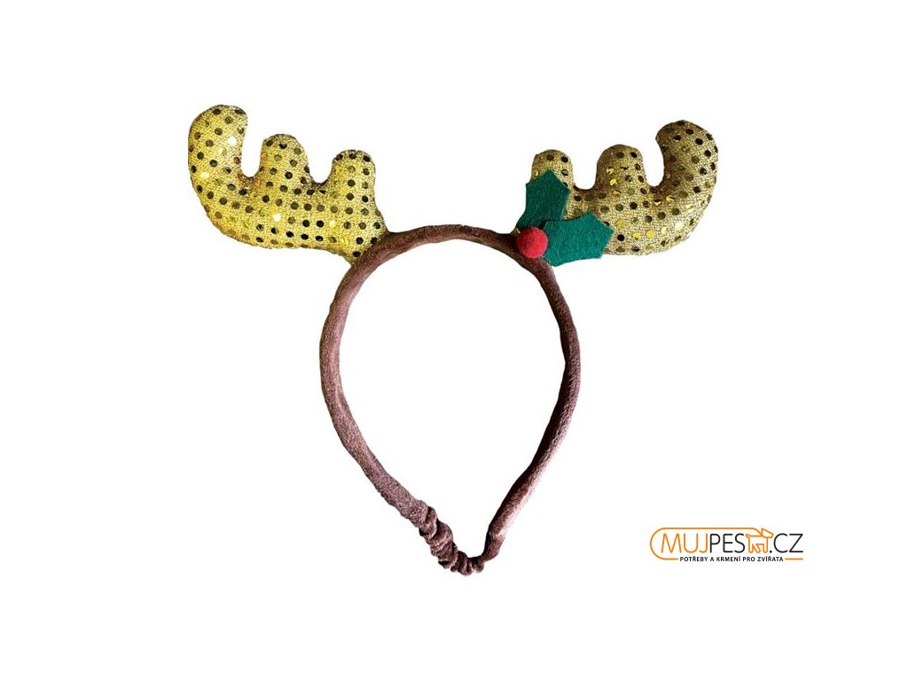 Čelenka pro psy je jednoduchý, ideální doplněk k navození sváteční atmosféry. Zlaté parohy, které hází jemné odlesky, překvapí každou rodinnou návštěvu svojí originalitou.