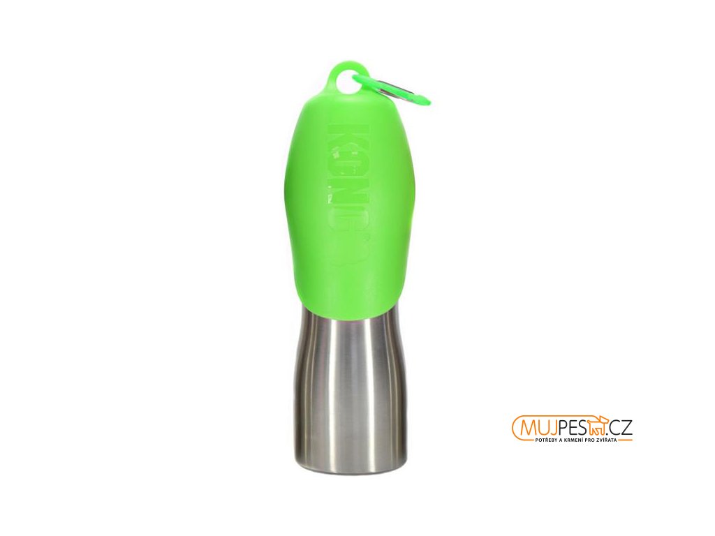 Každý pes potřebuje dostatečný přísun pitné vody – na dlouhé procházce, při cestování, po venkovní aktivitě, a to zvláště za horkých dnů. Láhev KONG H2O se pro dodržení pitného režimu dokonale hodí. Snadno se přenáší a díky karabině lze připnout např. na batoh. Vzhledem k objemu je cestovní láhev vhodná pro středně velké a velké psy. Je vyrobena z nerezové oceli, odolná proti vytečení a 100% recyklovatelná. Šroubovací uzávěr z netoxického polypropylenového materiálu lze použít jako napájecí misku.