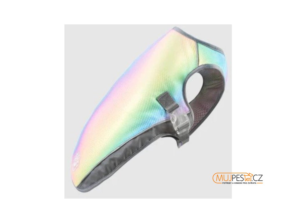 Funkční a stylová vesta Canada Pooch Chill Seeker Cooling Vest ochladí vašeho psa i za největších letních veder. Po namočení síťovaného materiálu se voda začne odpařovat a vesta díky tomu příjemně chladí. Nevyužívá přitom žádné chemické chladicí látky, pouze speciální savou, a přitom prodyšnou síťovinu, která dobře zadržuje vodu a umožňuje její postupné odpaření. Vestu lze namočit před nasazením nebo polévat vodou přímo na psovi. Zapíná se nastavitelným hrudním popruhem s trojzubcovou sponou.