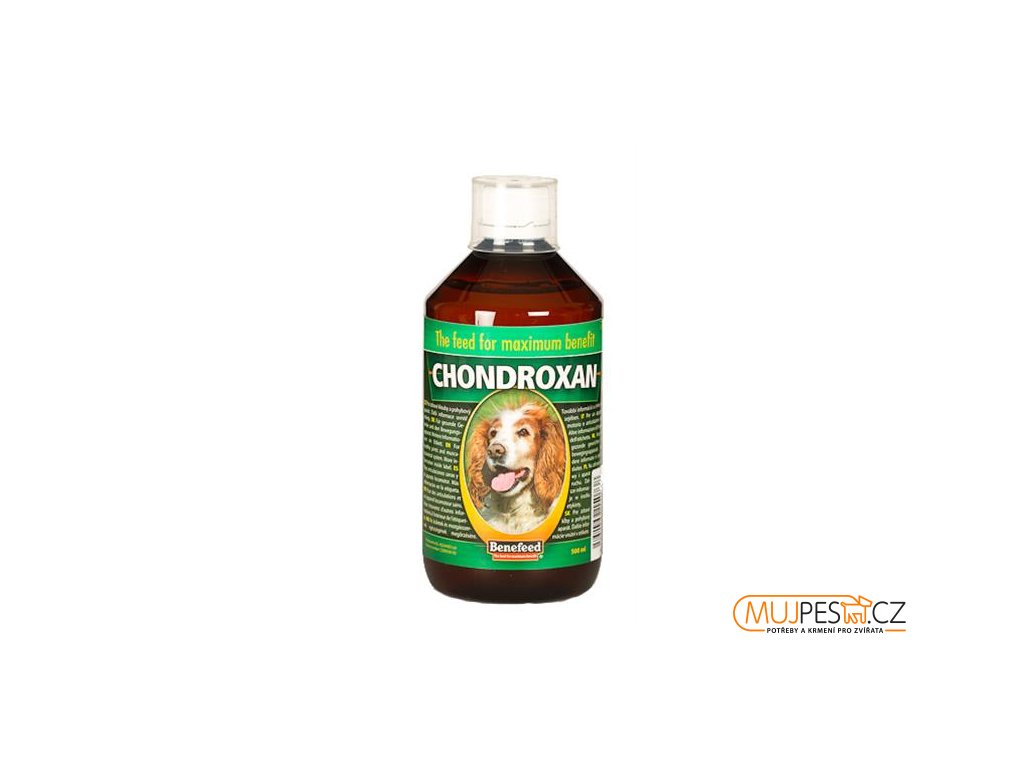 CHONDROXAN je krmný doplněk s jedinečným komplexem účinných látek sloužící k regeneraci kloubních chrupavek, zmírnění bolesti kloubů, zlepšení hybnosti a zpomalení dalšího poškození kloubních chrupavek. Tekutá forma přípravku je daleko účinnější než tuhé či práškové formy, protože zajišťuje rychlou vstřebatelnost a maximální využití účinných látek.
