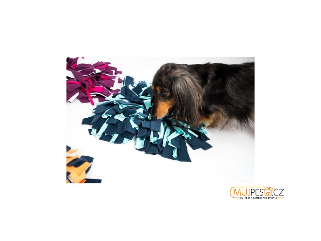Použití: schovejte do koberečku pamlsky nebo granule a nechte psa je hledat. Větší kousky se používají jako motivační, posilují chuť psa něco najít, menší kousky jsou o vytrvalejší práci, která zklidňuje.
