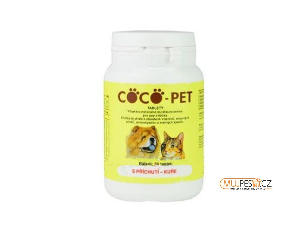 Doplňkové krmivo pro psy a kočky COCO-PET tablety s příchutí kuřete.