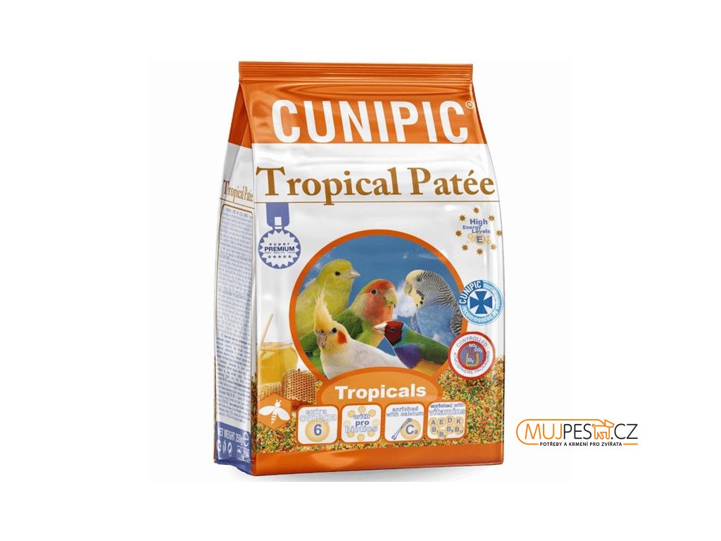 Cunipic Tropical Patée - doplňkové vaječné krmivo s ovocem a medem pro semenožravé ptáky.