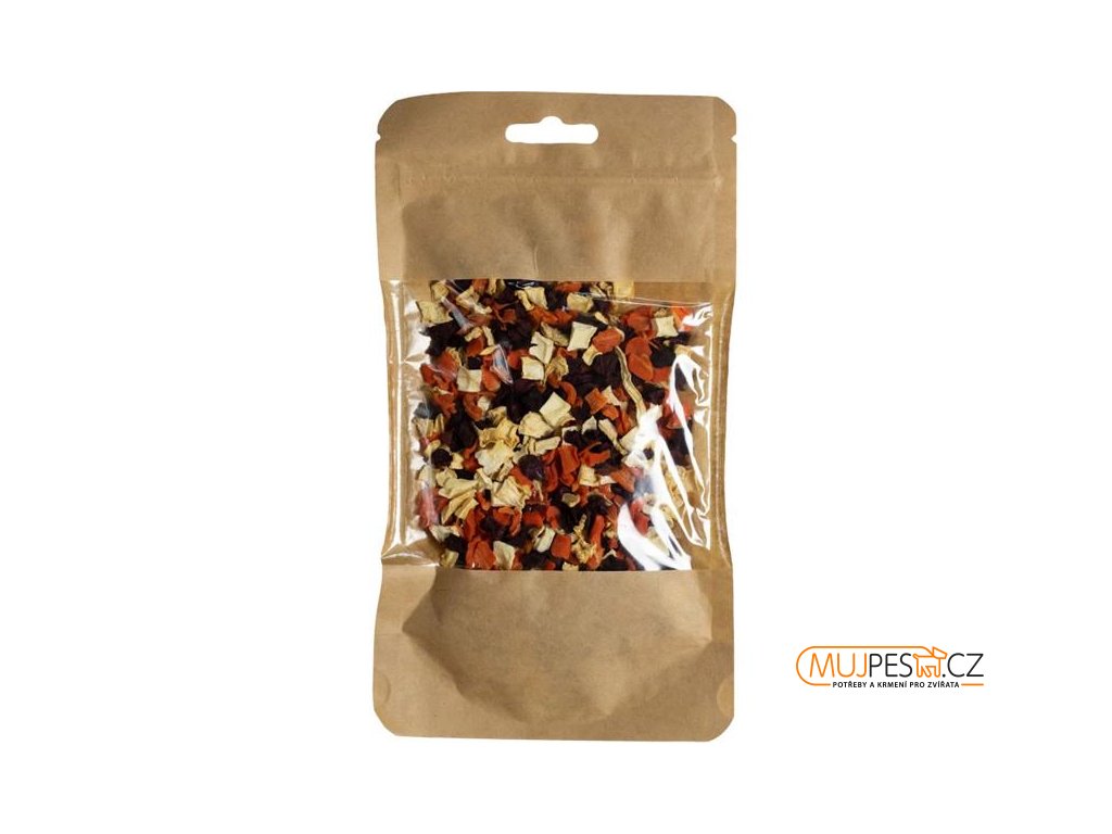 Sušené lahodné kostičky zeleniny pro králíky a hlodavce jsou pestrým doplňkem stravy plným vůní a přírodních chutí. Kvalitu každého balení zaručuje ruční plnění.