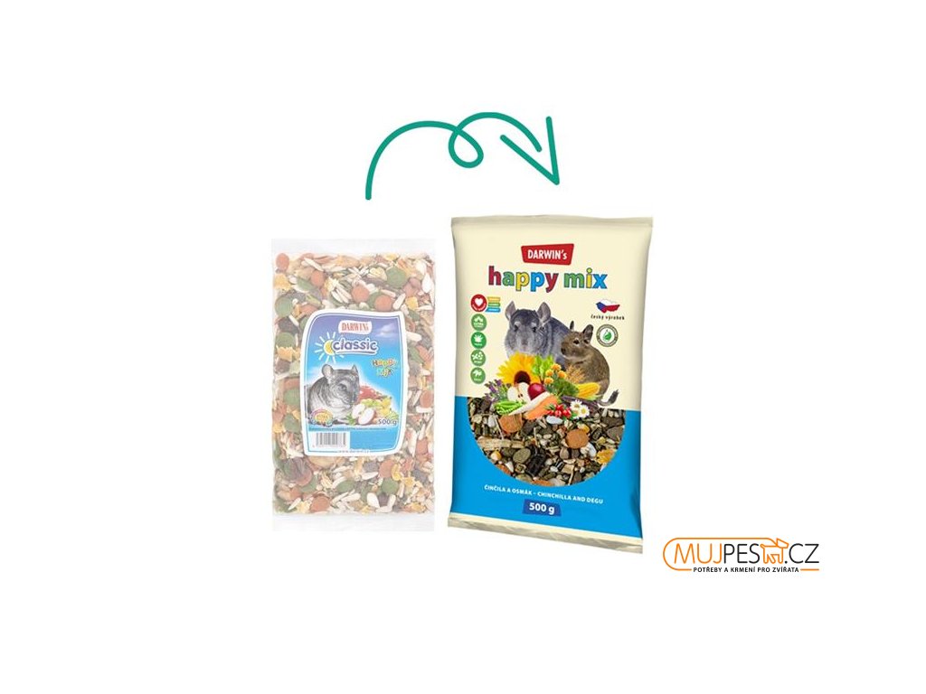 Prémiové krmivo pro činčily je ideálním způsobem, jak obohatit každodenní stravu vašeho mazlíčka. Krmivo Darwins Happy mix činčila je nabité živinami a doplňkovými látkami, které jsou přínosem pro zdravý a aktivní život činčil. Obsahuje robustní minerálně-vitamínový komplex, který zajišťuje, že činčily dostávají vše potřebné pro své optimální zdraví.