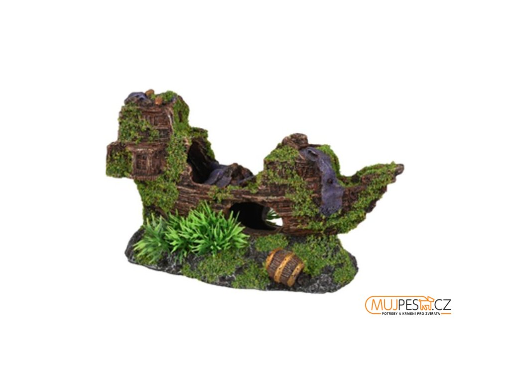 Umělá dekorace do akvária v podobě vraku.