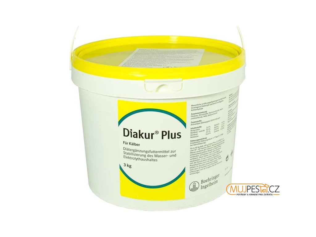 Diakur Plus by měl být používán u telat po dobu 1–7 dnů v případě rizika zažívacích potíží (průjem), v jejich průběhu nebo při rekonvalescenci. U telete s hmotností 50 kg smíchejte 100 g produktu Diakur Plus (jeden sáček) s 2 litry vody o teplotě 35–40 °C a ihned zkrmte. Opakujte 2–3krát denně. U větších telat použijte 150 g produktu Diakur Plus (1½ sáčku) smíchaného s 3 litry vody. V případech nekomplikovaného průjmu může být Diakur Plus smíchán s mlékem nebo náhražkou mléka, namísto vody. V takových případech se doporučuje nabídnout teleti další vodu mezi krmením mlékem. Před použitím a v případě prodloužené doby užívání se doporučuje vyžádat si stanovisko veterinárního lékaře.