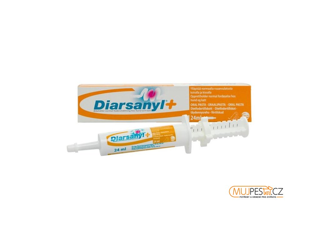 Diarsanyl pasta zelenohnědé barvy a krémové konzistence je díky příjemné chuti a vůni dobře přijímána většinou psů a koček. Účinné látky obsažené v pastě zabezpečují udržování normálních funkcí trávicího traktu. Při průjmu jakéhokoliv původu je poškozena téměř vždy mucinová vrstva střevní sliznice. Aby se zabránilo dalšímu poškození sliznice, vytváří montmorilonit obsažený v pastě ochranou vrstvu na povrchu poškozené sliznice a současně pomáhá při regeneraci přirozené mucinové vrstvy. Montmorilonit adsorbuje toxiny, bakterie, viry a jiné škodlivé molekuly, takže se nemohou dále vstřebávat a škodit organismu. Elektrolyty obsažené v produktu nahrazují esenciální elektrolyty, které organismu chybí v důsledku průjmu. Dextróza představuje lehce dostupný externí zdroj energie bez odčerpávání energie organismu. Jednoduché a praktické použití chutné pasty přispívá ke kladnému výsledku léčby.