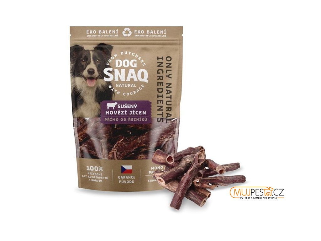 Kvalitní sušené doplňkové krmivo pro všechna plemena psů s normální aktivitou. Jde o 100 % přírodní produkt bez přidaných konzervantů, barviv a cukrů. Žvýkání hovězího jícnu posiluje žvýkací svaly psa, čistí zubní plak, masíruje dásně a působí preventivně proti vzniku zubního kamene, vyrovnává hladinu žaludečních šťáv a podporuje peristaltiku střev.