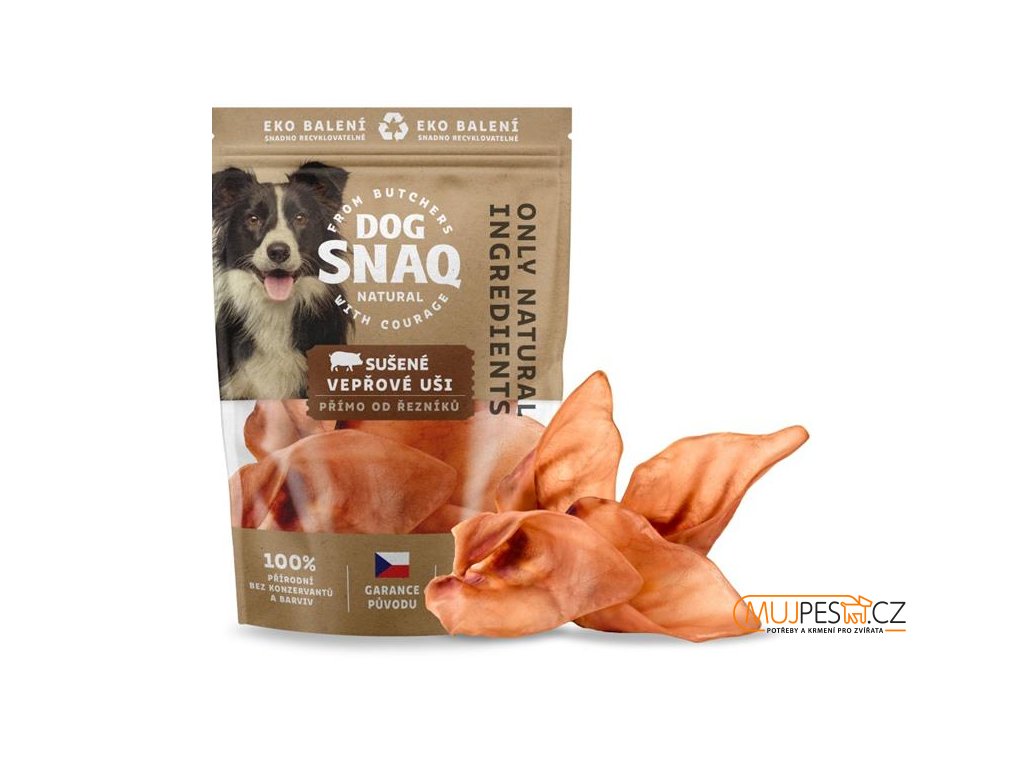 Kvalitní sušené doplňkové krmivo pro všechna plemena psů s normální aktivitou. Jde o 100 % přírodní produkt bez přidaných konzervantů, barviv a cukrů. Žvýkání vepřových uší posiluje žvýkací svaly psa, čistí zubní plak, masíruje dásně a působí preventivně proti vzniku zubního kamene, vyrovnává hladinu žaludečních šťáv a podporuje peristaltiku střev. Pamlsky obsahují vyšší množství kolagenu, který prospívá zdraví kloubního aparátu, a jsou přirozeným zdrojem vápníku pro podporu kloubů a lesklé srsti.