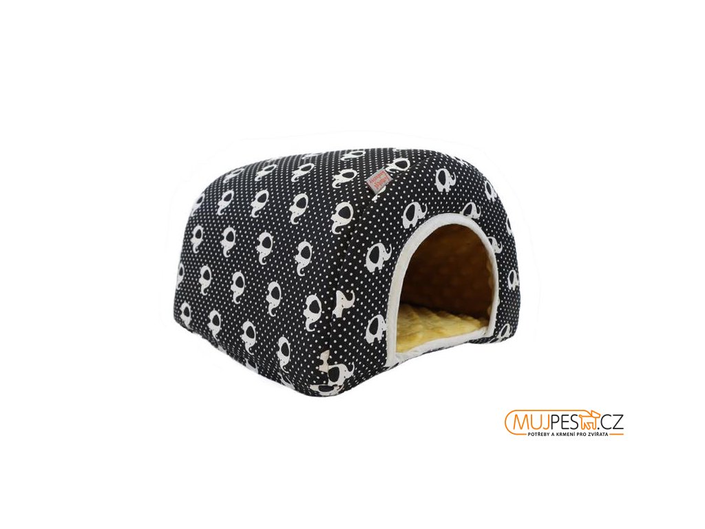 Domek dr.savec oblouk L, černobílí sloni, okrová minky 27x27x20cm