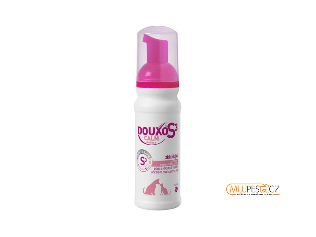 Pěna Duoxo S3 Calm je vhodná pro kočky a psy s citlivou, svědivou nebo podrážděnou pokožkou. Obsahuje ophytrium, čištěnou přírodní složku vysoce účinného komplexu S3 (Safe Skincare Selection). Zklidňuje, obnovuje a posiluje pokožku. Hydratuje a restrukturalizuje srst, zanechává ji jemnou a lesklou a usnadňuje její rozčesávání. Nanášení pěny je jednoduché a není třeba ji oplachovat. Složení je bez parabenů a barviv, má jemnou hypoalergenní vůni a pH přizpůsobené pokožce psů a koček.