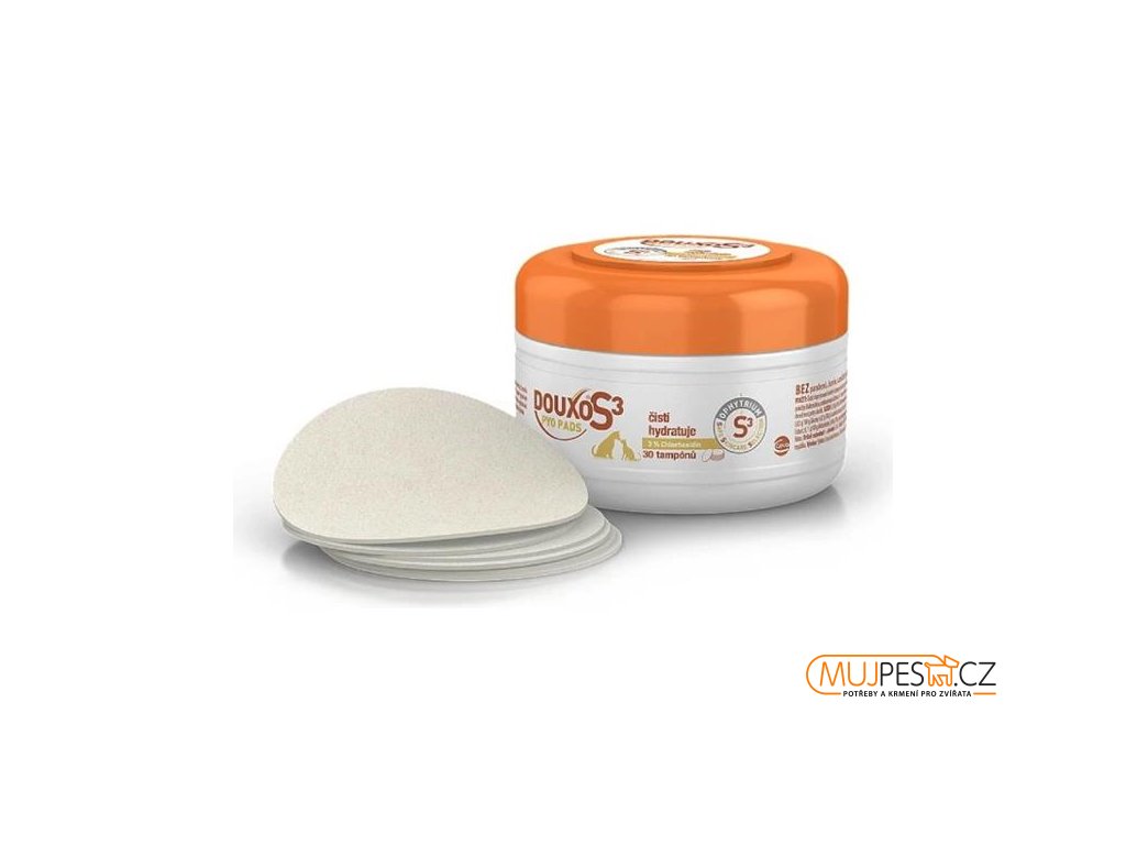 Antiseptické čisticí tampony Douxo S3 jsou určené k čištění záhybů kůže, tlapek a ušních boltců psů a koček, kteří jsou náchylní k bakteriálním nebo kvasinkovým infekcím. Obsahuje ophytrium, čištěnou přírodní složku vysoce účinného komplexu S3 (Safe Skincare Selection). Šetrně čistí pokožku a díky 3% chlorhexidin diglukonátu působí antisepticky. Zajišťuje vláčnost a dlouhodobou hydrataci pokožky a zklidňuje podráždění. Jemné složení bez parabenů, ftalátů a barviv, s jemnou hypoalergenní vůní, respektuje přirozené pH pokožky psů a koček.